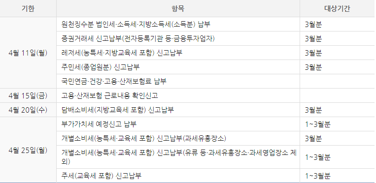 2022년 4월 세무일정을 공유합니다.
